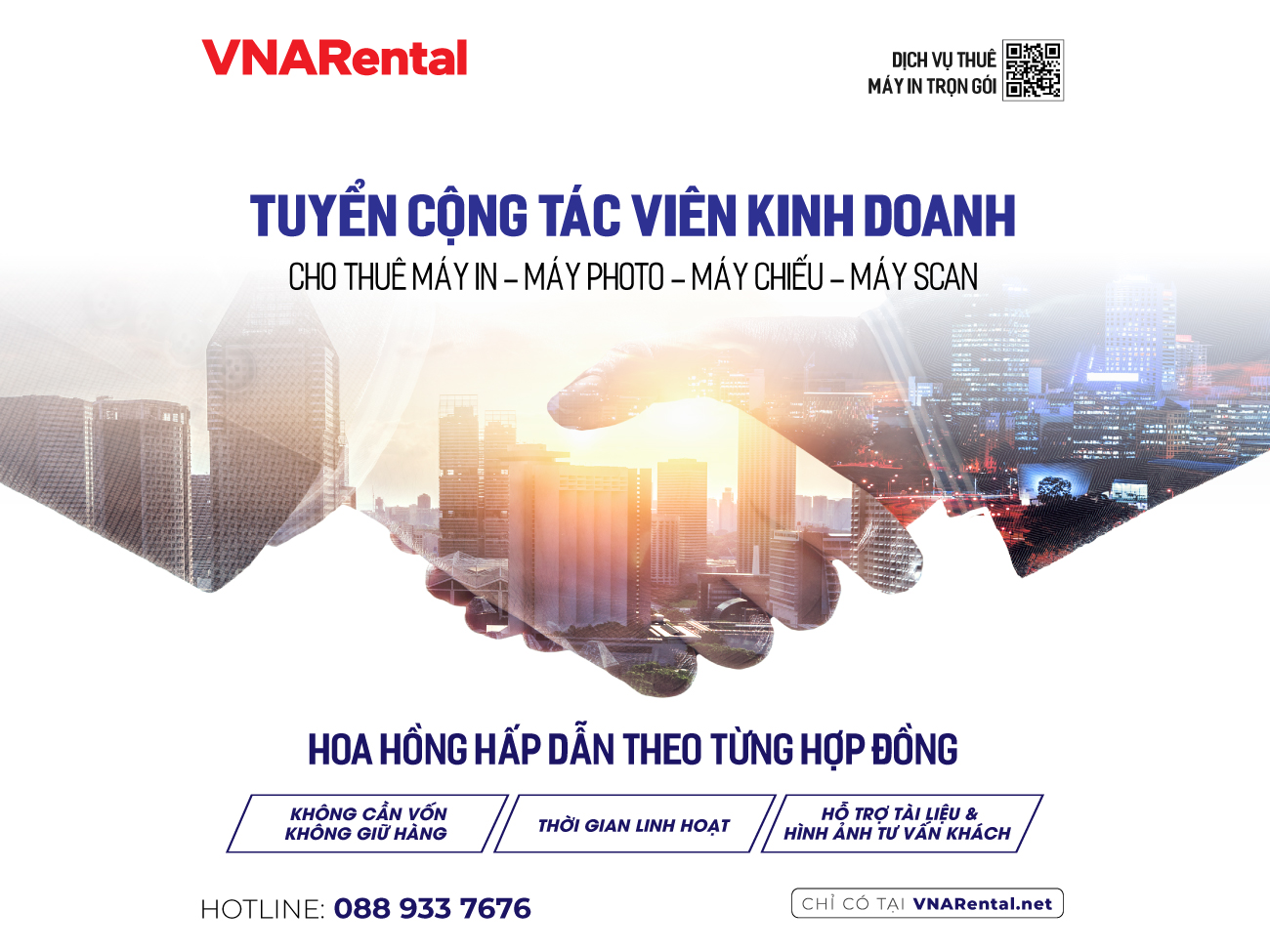 VNARental đang cần bạn! Liên hệ chúng tôi ngay nhé! Trong bối cảnh các doanh nghiệp ngày càng chú trọng tối ưu chi phí, việc thuê thiết bị văn phòng như máy in, máy photocopy, máy scan hay máy chiếu dần trở thành giải pháp được ưa chuộng vì tính linh hoạt, tiết kiệm và hiệu quả. VNARental tự hào là đơn vị cung cấp dịch vụ cho thuê máy in, photo, scan, máy chiếu chuyên nghiệp, uy tín. Với kho thiết bị đa dạng, đội ngũ kỹ thuật tay nghề cao cùng dịch vụ chăm sóc tận tâm, chúng tôi mang đến giải pháp toàn diện cho khách hàng từ các tập đoàn, trường học, cửa hàng, hộ kinh doanh,… đến các cá nhân ở nhiều lĩnh vực, ngành nghề. Hiện tại, với mong muốn mở rộng thị trường, VNARental tuyển cộng tác viên kinh doanh trên toàn quốc để cùng chúng tôi mang dịch vụ chất lượng đến gần hơn với nhiều khách hàng có nhu cầu thuê máy. 1. Vì sao nên làm cộng tác viên cho thuê máy in, photo, scan, máy chiếu? Máy in, photo, scan, máy chiếu là sản phẩm gắn liền với hoạt động văn phòng, trường học, sự kiện, nên nhu cầu luôn ổn định. Việc kinh doanh cho thuê các thiết bị vừa kể không chỉ dễ chốt khách vì là dịch vụ thiết yếu mà bởi khi tham gia cộng tác viên tại VNARental, bạn sẽ nhận được nhiều lợi ích thiết thực: Không cần vốn, không giữ hàng: Chỉ cần giới thiệu, kết nối khách hàng có nhu cầu, đội ngũ VNARental sẽ hỗ trợ xử lý hợp đồng và dịch vụ. Nhận hoa hồng hấp dẫn: Nhận thưởng theo từng hợp đồng ký kết thành công, giá trị hợp đồng càng lớn, hoa hồng càng cao. Được hỗ trợ tối đa: Bạn chỉ cần tập trung tìm kiếm khách hàng. VNARental sẽ cung cấp tài liệu, hỗ trợ báo giá, tư vấn kỹ thuật giúp bạn. Không ràng buộc thời gian: Tùy theo quỹ thời gian của bản thân hoặc tận dụng những lúc rảnh rỗi, bạn có thể chủ động sắp xếp để bắt đầu công việc cộng tác viên tại VNARental. 2. Đối tượng phù hợp để trở thành cộng tác viên Chương trình cộng tác viên của VNARental phù hợp với nhiều đối tượng, đặc biệt là: Sinh viên muốn kiếm thêm thu nhập. Nhân viên văn phòng, kế toán, thư ký,… những người thường xuyên tiếp xúc với các thông tin, có nhiều mối quan hệ với những cá nhân, đơn vị có nhu cầu sử dụng thiết bị. Người kinh doanh online, freelancer, môi giới thiết bị văn phòng. Cá nhân làm việc trong lĩnh vực in ấn, văn phòng phẩm, công nghệ. Bất kỳ ai có mong muốn tạo thêm nguồn thu nhập thụ động, phát triển bản thân. 3. Quyền lợi khi trở thành cộng tác viên kinh doanh của VNARental Hoa hồng minh bạch, hấp dẫn: Nhận ngay hoa hồng theo từng giá trị hợp đồng khi khách hàng hoàn tất ký kết. Hợp đồng có giá trị càng cao, hoa hồng càng nhiều. Được đào tạo, hướng dẫn chi tiết: Không lo thiếu kiến thức sản phẩm hoặc áp lực tư vấn khách, VNARental luôn sẵn sàng cung cấp tài liệu và hỗ trợ bạn trao đổi với khách hàng. Bên cạnh đó, bạn cũng được tham gia các buổi training sản phẩm nội bộ của VNARental như một nhân viên chính thức. Hỗ trợ marketing: Được quyền sử dụng nội dung, hình ảnh (banner, poster, hình ảnh khách thuê máy thực tế,…) trên các kênh chính thức của VNARental để quảng bá dịch vụ. Đồng hành lâu dài: Mọi khách hàng bạn giới thiệu sẽ được ghi nhận, chăm sóc tận nơi. Đặc biệt, bạn vẫn được hưởng hoa hồng theo chính sách nếu khách hàng tái ký hợp đồng mới. 4. Cách thức trở thành cộng tác viên của VNARental Nếu bạn quan tâm và muốn trở thành đồng đội của VNARental, vui lòng làm theo các bước bên dưới: Bước 1 – Đăng ký: Liên hệ hotline 088 933 7676 hoặc nhắn tin vào hộp thư để đăng ký nhanh tại đây. Sau khi đăng ký thông tin thành công. Bước 2 – Nhận tài liệu: VNARental sẽ gửi chính sách giá, thông tin sản phẩm, quy trình bán hàng. Bước 3 – Giới thiệu khách hàng: Bạn tìm kiếm và giới thiệu khách có nhu cầu thuê máy. Bước 4 – Ký kết & nhận hoa hồng: Đội ngũ VNARental sẽ tư vấn, xử lý hợp đồng, tiến hành các thủ tục cho thuê, giao máy, chăm sóc, bảo trì thiết bị,… Bạn sẽ nhận được hoa hồng sau khi giao dịch hoàn tất (tùy vào thời hạn cho thuê, thời gian hoàn tất giao dịch có thể được xác định không giống nhau). Một công việc linh động, thu nhập xứng đáng với những giá trị bỏ ra để đáp ứng nhu cầu hướng đến sự linh hoạt, tối ưu chi phí và hiệu quả công việc của nhiều cá nhân và doanh nghiệp, bạn đã sẵn sàng để bắt đầu? Đăng ký ngay bây giờ để trở thành cộng tác viên của VNARental từ hôm nay! Mọi thắc mắc về việc đăng ký trở thành cộng tác viên của VNARental, xin vui lòng liên hệ: Hotline: 088 933 7676. Website: https://vnarental.net/. Fanpage: https://www.facebook.com/VNArental. Inbox Zalo OA.